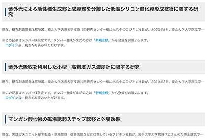 ここで取り上げている「研究論文」はフジキンが発行する技術情報誌「ながれをこえて」の掲載内容をベースに紹介されています。研究に至る背景から、結果や結論を導き出す各プロセスをまとめて、研究内容の詳細が確認できます。
