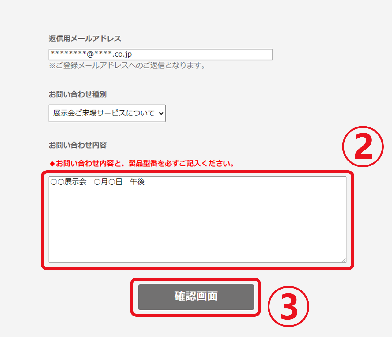② お問い合わせ内容の欄に、ご来場予定日時をご入力ください。