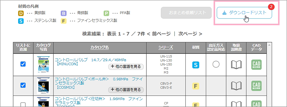 検索結果一覧左「リストに追加」のチェックボックスからご希望のデータを複数選択してください。