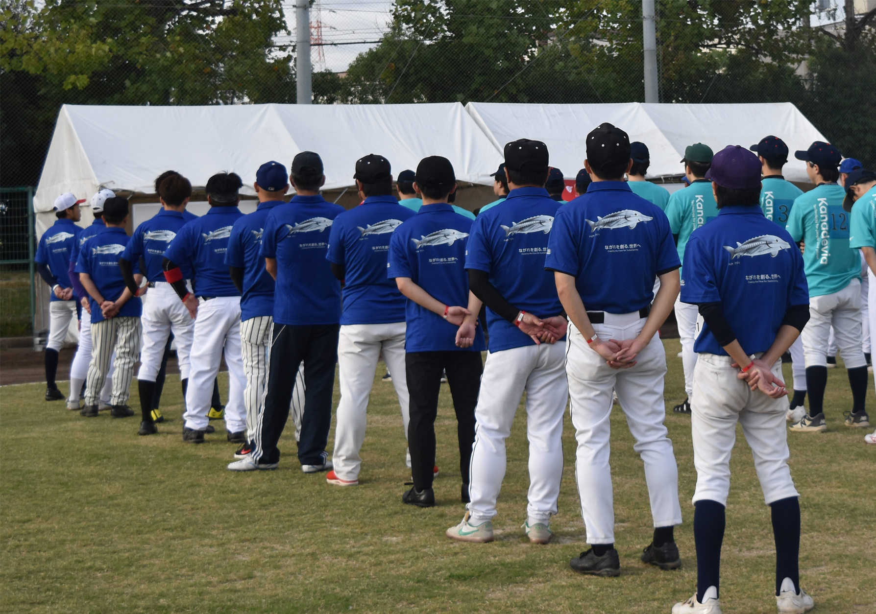 当日は大縄跳びや綱引き、ドッジボールなど11競技が実施され、フジキンはバスケットボール、野球、フットサル、卓球の4競技にエントリー。関西地区のメンバーを中心に約50人が参加し、フジキンのチョウザメマスコット「Fujie(フジィ)」をプリントした、揃いのユニフォーム姿で汗を流しました。