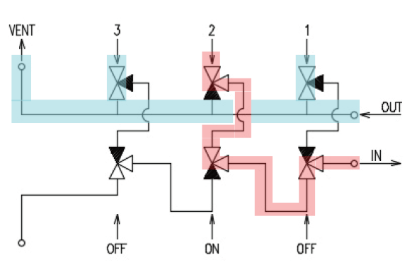 バルブの駆動させると任意の流体のみを分析器に供給し、閉時に内部に残る不要な流体を排出します。